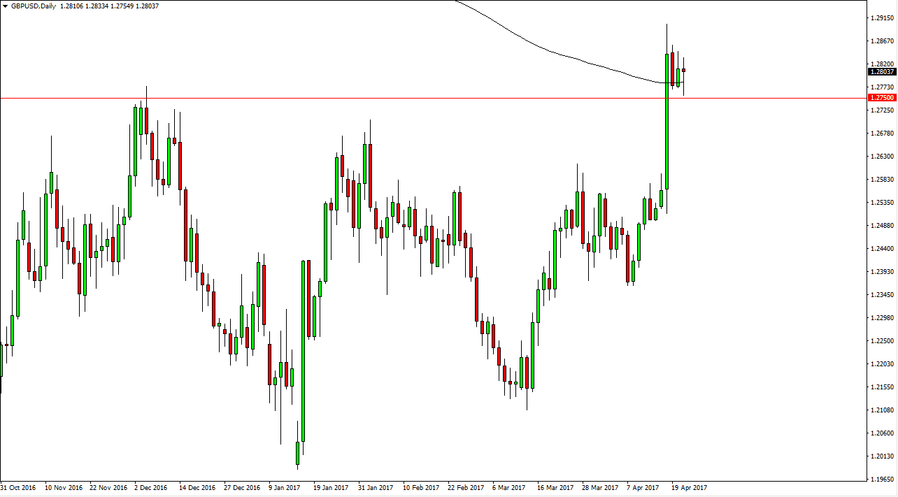 The EUR/USD pair initially fell during the day on Friday, but turned around to form a hammer which is a bullish sign. However, we had a shooting star from the previous session, so this shows quite a bit of indecision. I believe that the market will continue to be very volatile because of the French elections and of course all the other moving pieces. However, if we can break above the top of the shooting star from the Thursday session, the market should then be able to go to the 1.09 level. A breakdown below the bottom of the hammer would be negative, perhaps sending the market down to the 1.06 handle. Because of this, it’s likely that the market will continue to be volatile regardless what happens.