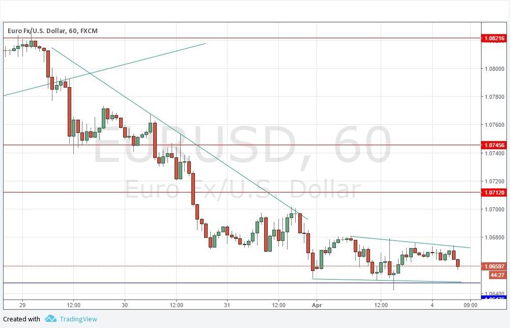 Yesterday’s signals gave a long trade following the bullish pin candle rejecting the support level identified at 1.0648. It came close to making the minimum 20 pips and is still in play.