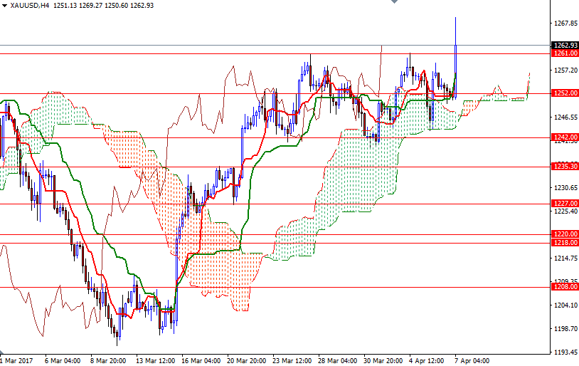 Gold prices rose in Asian trade on Friday after the U.S. launched missile strikes against Syria. U.S. President Donald Trump said, “Tonight I call on all civilised nations to join us in seeking to end this slaughter and bloodshed in Syria and also to end terrorism of all kinds and all types.” Support from the heightened geopolitical tensions offset a better-than-expected reading on unemployment claims and helped the market to break through the resistance at $1261. XAU/USD traded as high as $1269.27 an ounce, the highest level November 11, before pulling back to the current levels.