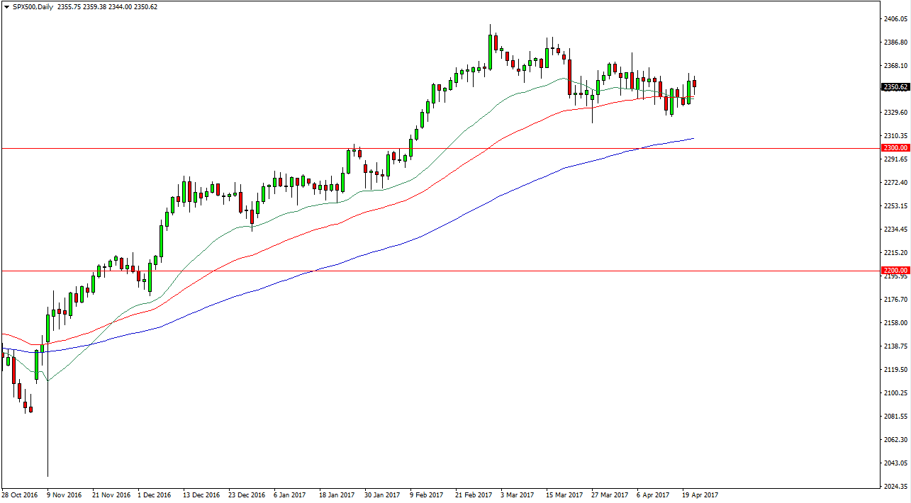 The S&P 500 initially fell on Friday but turned around to find enough support and form a hammer. We are currently in the middle of earnings season so that of course makes quite a bit of noise in the market. I still believe in the longer-term uptrend, and that it’s only a matter of time before we break out to the upside. The hammer suggests that the buyers are willing to step in on the dips, and because of that I think the market will then go looking for the 2400 level. I don’t have any interest in selling, I believe that the 2300 level is the absolute “floor” of the market.