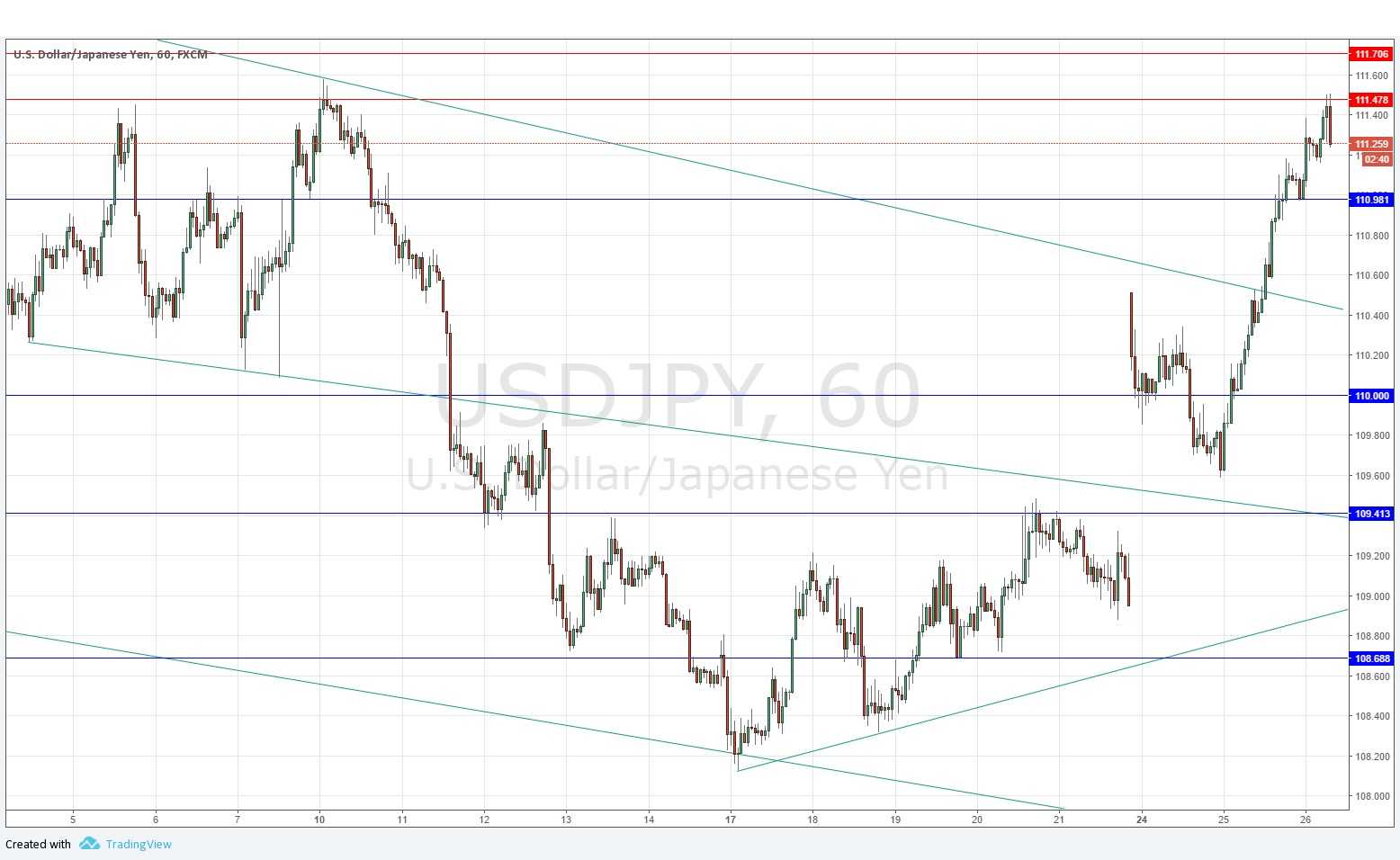 Yesterday’s signals were not triggered as there was no bearish price action at 111.02.
