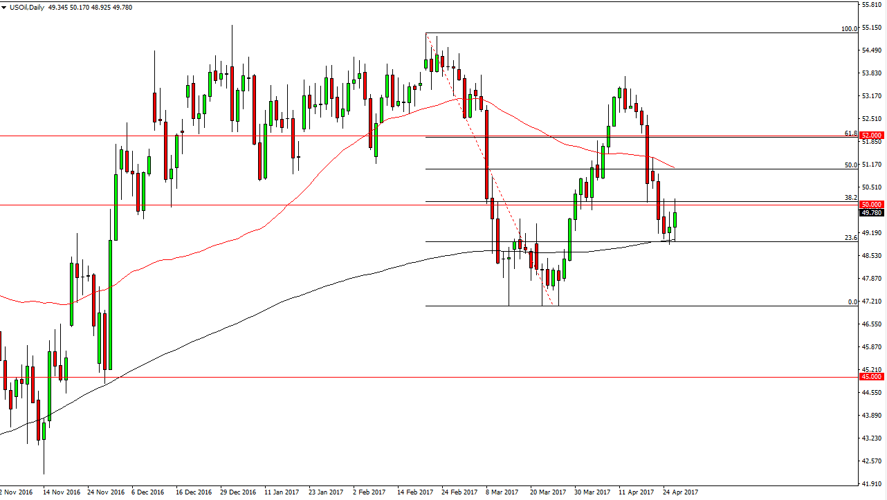 The WTI Crude Oil market had a positive session after getting a bullish inventory number out of the United States. However, the $50 level offered enough resistance to turn things around and form a less than the stellar candle. At this point, I believe it’s probably best to let the market pick a direction, and simply follow. I’m going to do this by going long on a break above the top of the range for the session on Wednesday, or shorting on a break of the lows. If we break down, I feel that the market should then go looking for the $47.25 level underneath which offered support previously. Alternately, if we break above the top of the candle for the session on Wednesday, the market will more than likely go looking towards the $51.25 level above.
