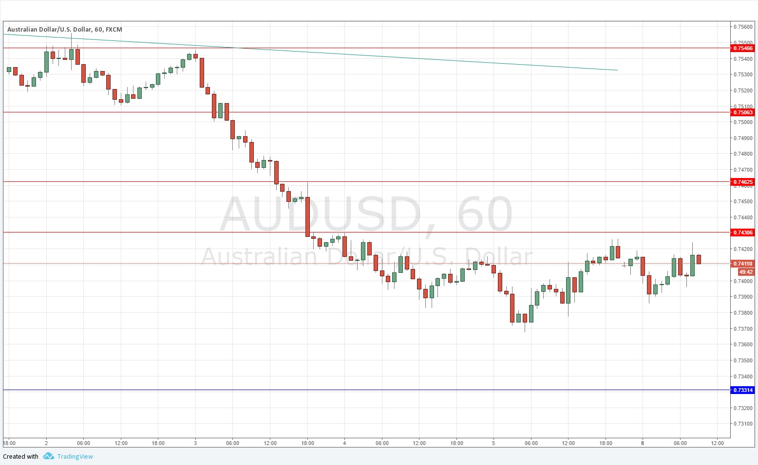 - Go short following some bearish price action on the H1 time frame immediately upon the next touch of 0.7431 or 0.7463.