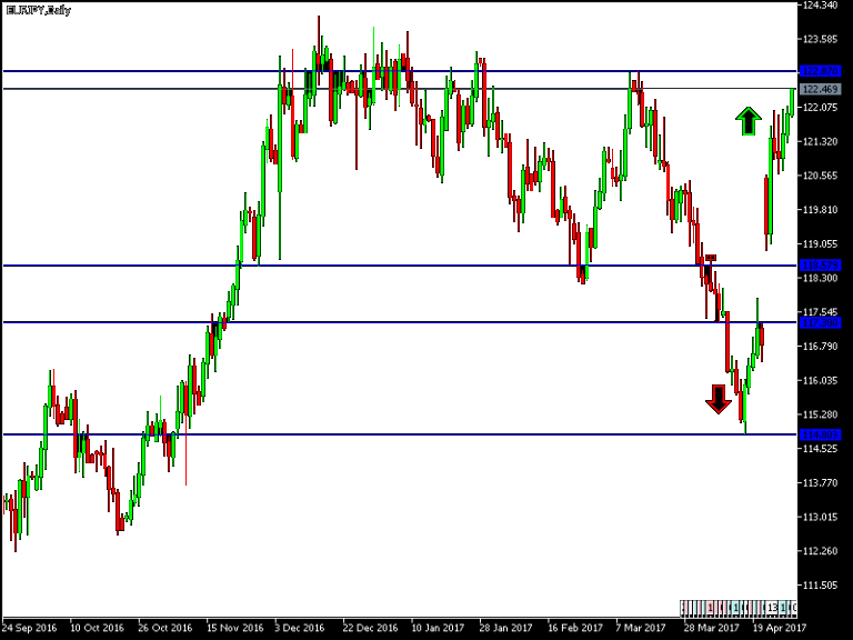 In light of strong gains for the Euro, supported by the safe outcome of the important French Elections, guarantees the continuity of the EU and the Euro with the expected loss of the far right candidate calling for the French Exit from the EU and abandoning the Euro. Based on this optimism, the Euro continues to gain strongly against the other major currencies, and against the Japanese Yen. The Euro made strong gains, with the EUR/JPY reaching to the 122.45 level, which is where it is at the time of writing. The Euro is taking advantage of the weak Yen due to the ease in geopolitical fears, which usually support the safe heaven assets, led by the JPY and the CHF.