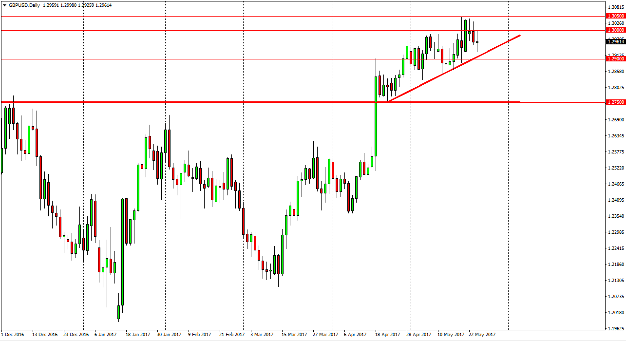 I think we will more than likely rally from here over the longer term, and if we can break above the 1.3050 level, the market should then go to the 1.3450 level above, which was the top of the largest consolidation area that this market has seen for several years. Because of this, I believe that although it may be choppy, longer-term traders are eyeing that level.