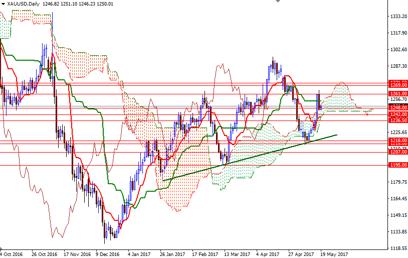 To the upside, there are hurdles such as 1250 and 1252 (the top of the daily cloud). If the bulls can push prices back above 1252, it is likely that the market will challenge 1256.70-1255 (the top of the hourly cloud). XAU/USD needs penetrate this barrier to gather momentum for a retest of 1265/1.