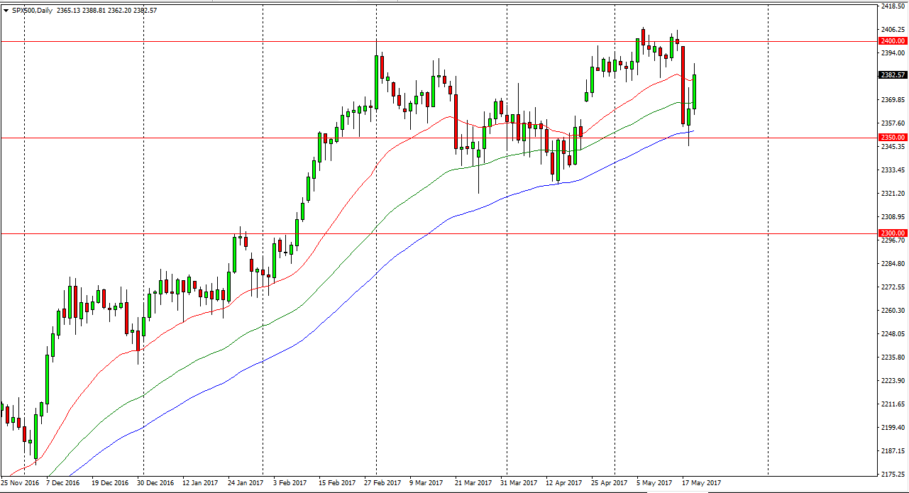 The S&P 500 had a bullish session on Friday, breaking above the top of the range from Thursday after the massive selloff on Wednesday. The 2350 level offered enough support to turn things back around, and reach towards the highs again at the 2400 level. I think going forward, buying short-term dips will be the way to go forward, and that the market will try to break above the 2405 level after that. Once we do, the market is much more comfortable going higher for the longer term. I don’t have any interest in shorting this market, and I believe that the trading environment will continue to favor short-term dips that offer value. I don’t have any interest in shorting this market, even though we have seen a significant amount of volatility.