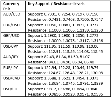 Key Support/Resistance Levels for Popular Pairs