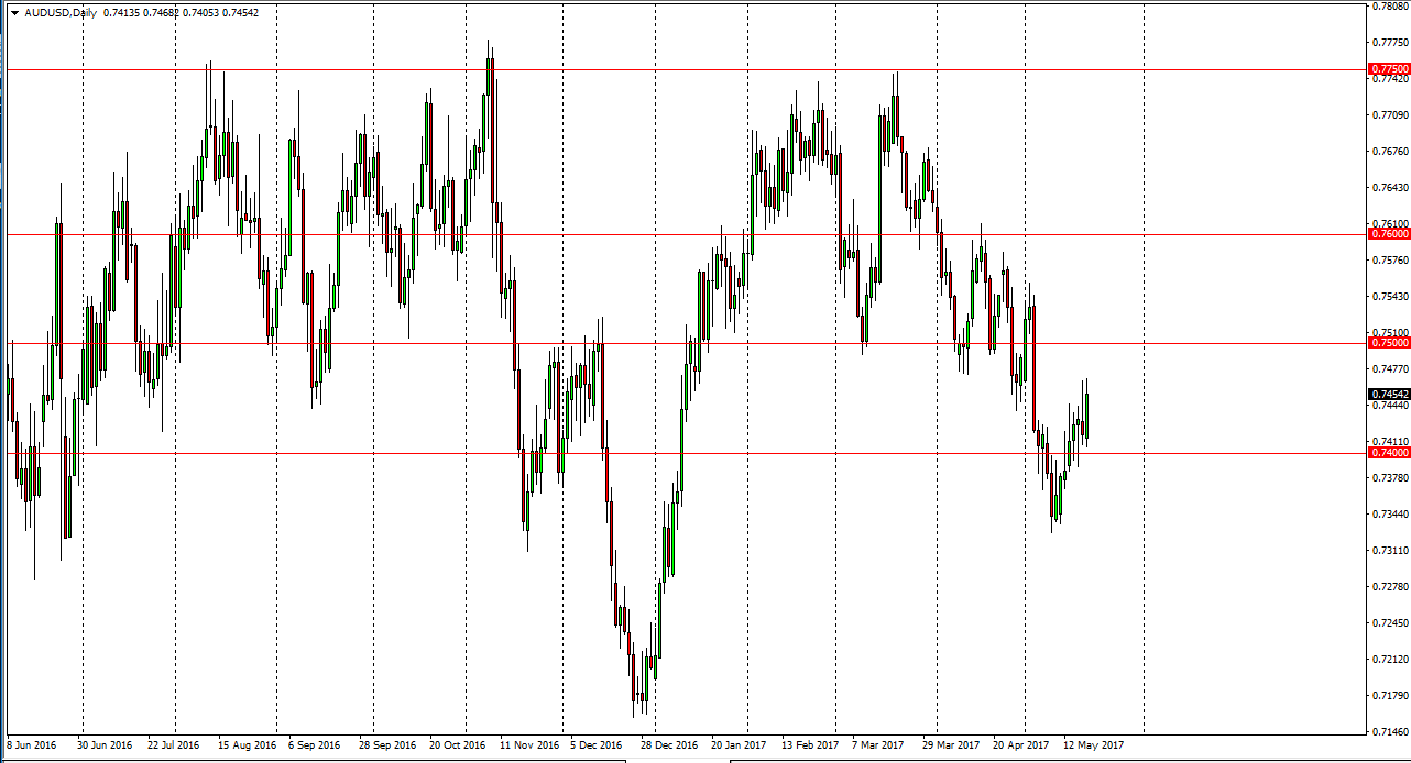 The Australian dollar rallied during the day on Friday, almost taking out the top of the shooting star from the Thursday session. Having said that, the one thing that I notice is that the weekly candle forming a hammer, and that is a very bullish sign. We could reach towards the 0.75 level, but a break above there would be a very bullish sign. Ultimately, we pull back from here, I think that the 0.74 level underneath should offer support. Pay attention to the gold markets, because they will lead the way going forward. Ultimately, this is a market that I think will continue to see quite a bit of choppiness, but I think more than anything else is going to follow whatever gold does. Keep an eye on both of these markets, as they influence each other. It’s very difficult to trade this market right now, because it has been so choppy. It is actually easier to short this market on signs of exhaustion after rally near the 0.75 handle. However, we don’t have that yet.