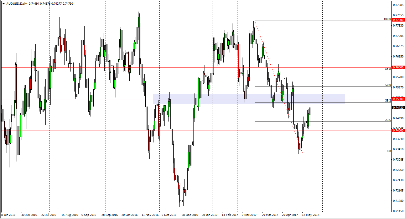 The Australian dollar had a positive session after initially falling, and finding support. We found the region just below the 0.75 level to be resistive, which is the 38.2% Fibonacci retracement level from the recent pullback. If we can break above that round number, I think at that point the market will be free to go higher, but obviously we need the gold markets to behave in the same manner. This pair tends to follow gold overall, and I believe that it’s only a matter of time before the market should then go to the 0.76 level above. That should coincide nicely with the move in gold to higher levels, which is possible, but I do see a significant amount of resistance just above. If we do fall, the market should then go down to the 0.74 level, and perhaps even lower than that to completely retrace the bounce. Either way, I think were going to see a lot of noise and volatility in the Australian dollar.