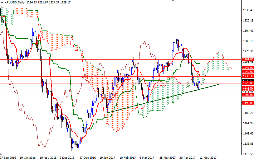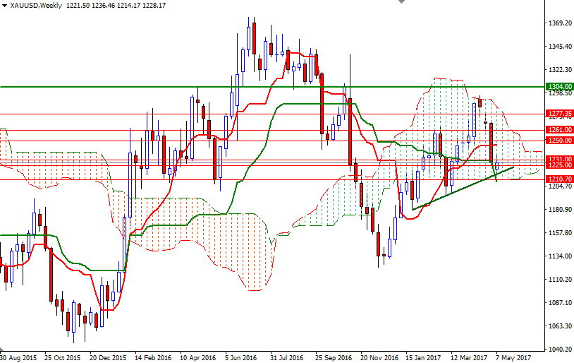 Gold prices rose for a second straight session and settled at $1228.17 an ounce on Friday as a series of economic data out of the world’s largest economy disappointed the market and weighed on the American dollar. The XAU/USD pair initially headed lower but found enough support in the $1218/5 area and moved back up, headed towards the 4-hourly Ichimoku cloud. Although Friday’s U.S. retail sales and consumer price index numbers fell short of market expectations, investors are still confidently expecting the Federal Reserve to raise interest rates at its next meeting.