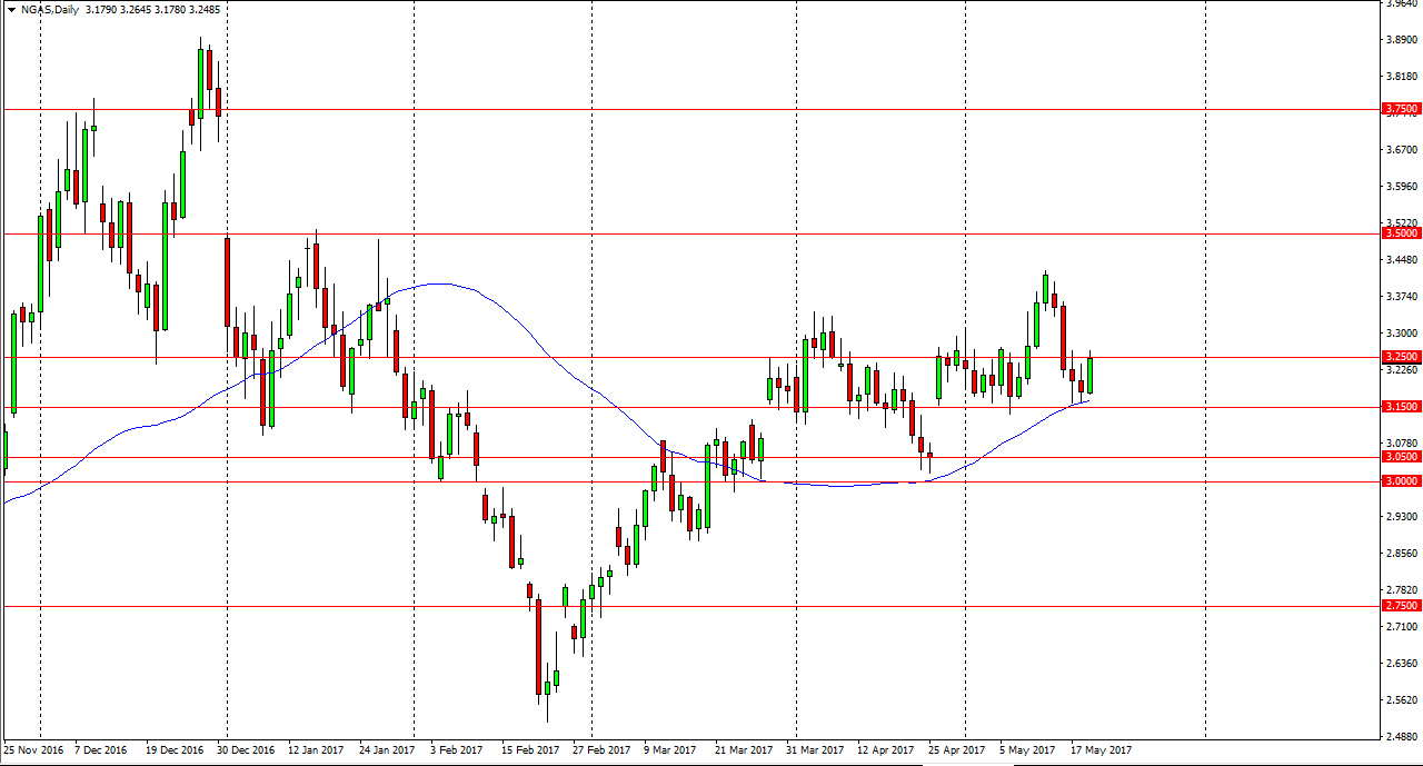 The natural gas markets rallied significantly during the day on Friday, maybe not so much in range, but the fact that we broke above the shooting star from the Thursday session and slammed into the $3.25 level, an area that has been resistant. If we can break above the top of the candle for the session on Friday, the market should then go looking towards the $3.33 level, an area that has been resistive, and then potentially the $3.40 level which was the most recent higher. Ultimately, I think that the market will find buyers on dips as well, so I’m not interested in selling this market until we get below the $3.15 level again. As you can see, the 50-day exponential moving average is sitting just below current pricing, and it is offering dynamic support. However, if we break down below that $3.15 level, it makes sense that we would try to fill the gap down to the 3.05 handle.