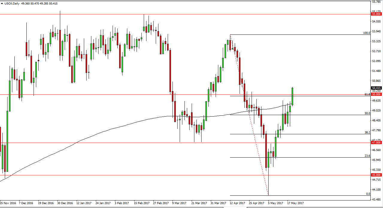 The WTI Crude Oil market had a very strong Friday, as we broke above the 200-day moving average finally. Not only that, we broke above the $50 handle, and it looks as if the crude oil markets are ready to continue going higher. My regular readers here at Daily Forex know that longer-term I think that oil markets are going to struggle, but it’s obvious that we are going to continue to go higher. The market is reacting to reports that not only will OPEC extend production cuts, but they may expand them, which is a very bullish move for supply, however having said that I also recognize that the higher this market goes, the more Canadians, Americans, and Mexicans start drilling. Because of this, it’s likely that the rally is short-lived, but I do certainly think that the buyers are in control currently.