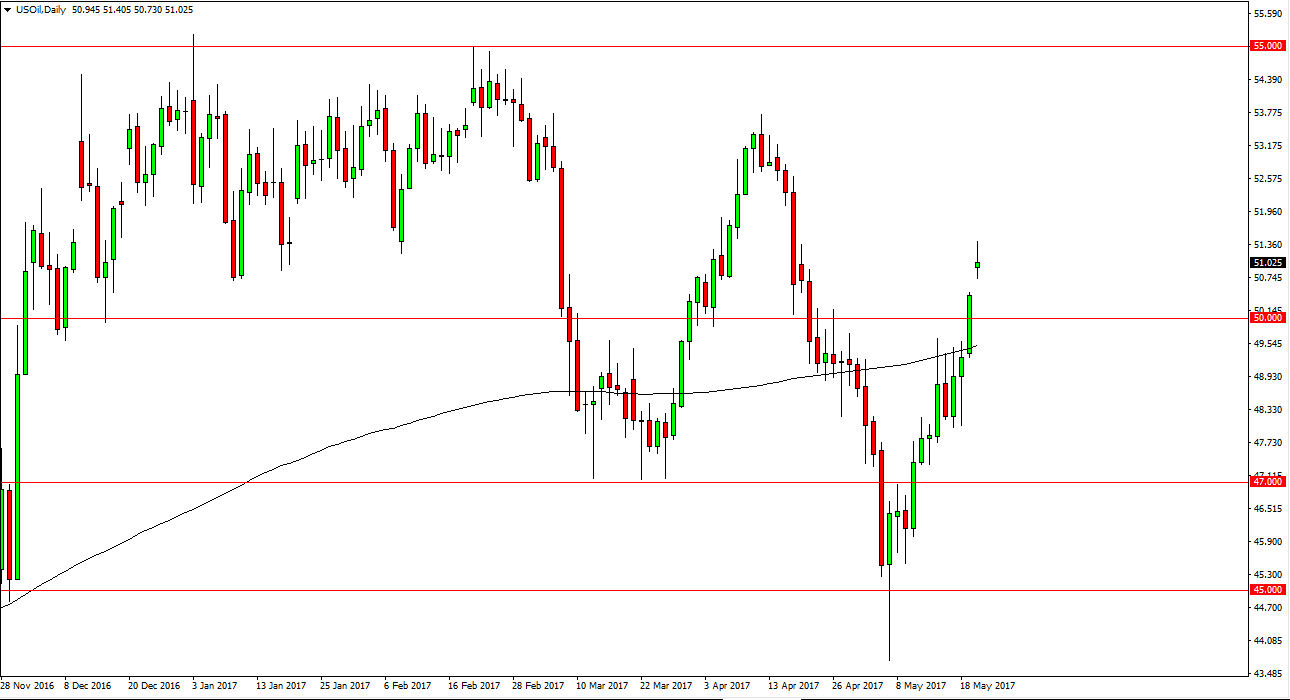 The WTI Crude Oil market gapped higher at the open on Monday, as it was announced that the Saudi Arabian oil minister believes that most, if not all OPEC members are willing to extend the production cuts. The gap should now offer support, and a pullback should end up being a buying opportunity. I believe that the $50 level is going to be supportive, and a break above the top of the candle for the session on Monday would also be a bullish sign. Either way, I believe that the market should continue to go much higher, and with that being the case it’s likely that this is a “buy on the dips” situation just waiting to happen, and that the market should continue to go much higher. The $53.50 level above is my initial target. Having said all of that, the market is a bit parabolic so expect choppiness.