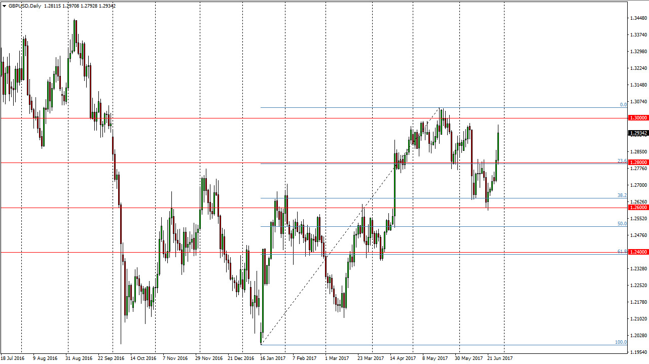 The British pound skyrocketed during the day, as the 1.28 level offered support and we then broke above the 1.29 level. The market looks very likely to find buyers on dips, and I think we are going to reach towards the 1.30 level. A break above there should send this market even higher. The British pound is being lifted by the comments coming out of Mark Carney suggesting that the Bank of England will have to raise interest rates if the global market continues to heat up. That being the case, it’s likely that the buyers will continue to rally from time to time, and I believe that the 1.28 level underneath is going to be massively supportive. If we break down below there, then it would be very negative, but until then I believe that the buyers are most certainly in control.