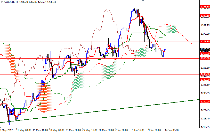 The U.S. central bank will publish updated economic projections, and Chair Yellen is scheduled to give a post-meeting press conference. Traders are also keen to see if the Fed provides more details on its plans to shrink the size of its balance sheet this year. While trading above the daily and the weekly Ichimoku clouds suggest the bulls have the medium-term technical advantage, residing below the clouds on the H4 chart implies that prices could see downside risks in the near term.