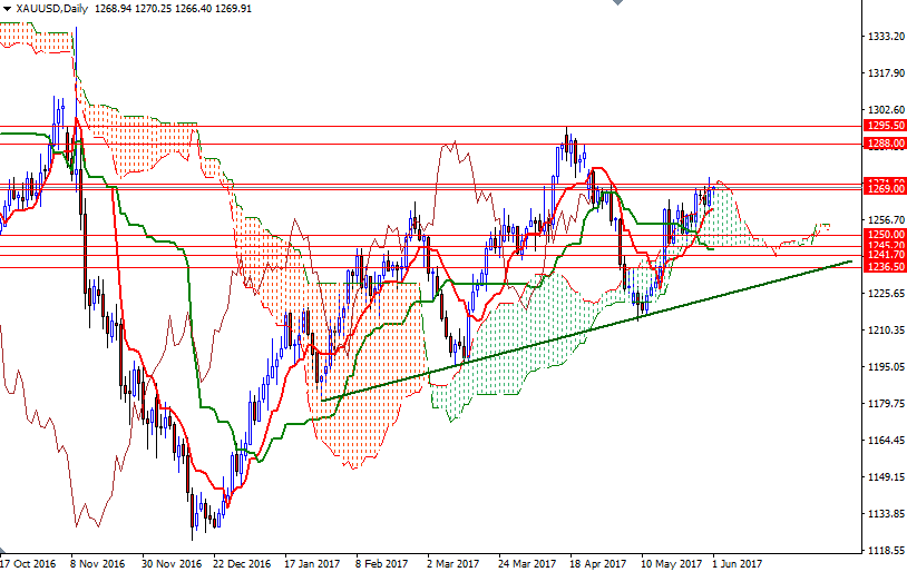 The candlestick with a tall upper shadow (4-hour chart) suggest that we shouldn’t rule out a pull back to 1265/3 if the market fails to climb above 1271.50. The bears will need to capture this camp in order to make an assault on the 1259 level, which happens to be the top of the 4-hourly cloud. A break down below there implies that 1256.50-1254 will be the next target. On the other hand, if XAU/USD convincingly penetrates 1271.50-1269, then we may see the bulls making a fresh attempt to 1277.35-1276. A daily close above 1277.35 makes me think that the market is getting ready to tackle 1283/2.
