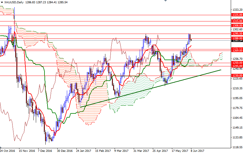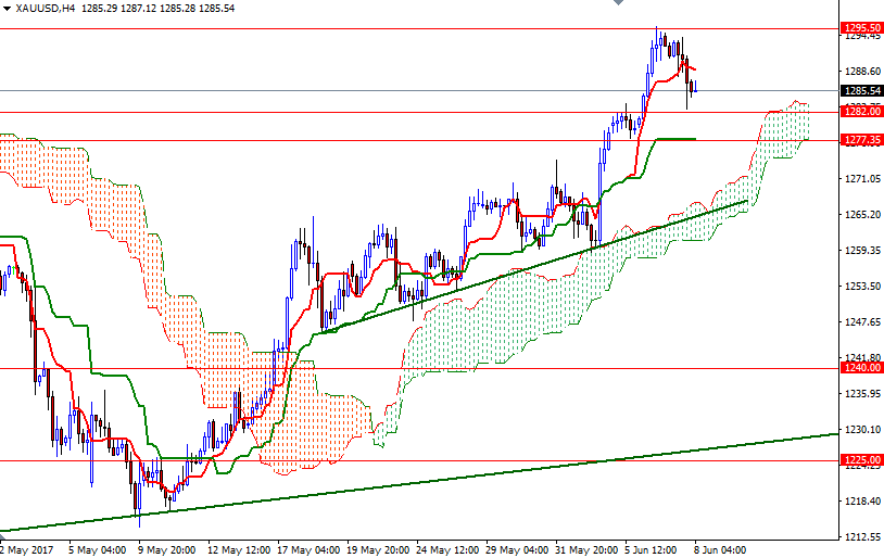 Gold prices ended Wednesday’s session down 0.6%, or $7.74, to settle at $1286.66 an ounce as investors took profits from a recent rally that pushed the market to the highest level in seven months. The major U.S. stock indexes were mostly higher, and gains in stocks dented investors’ appetite for the precious metal. The XAU/USD pair was not able to hold above the support in the $1288-$1286.40 area and as a result, prices returned to the $1282 level.