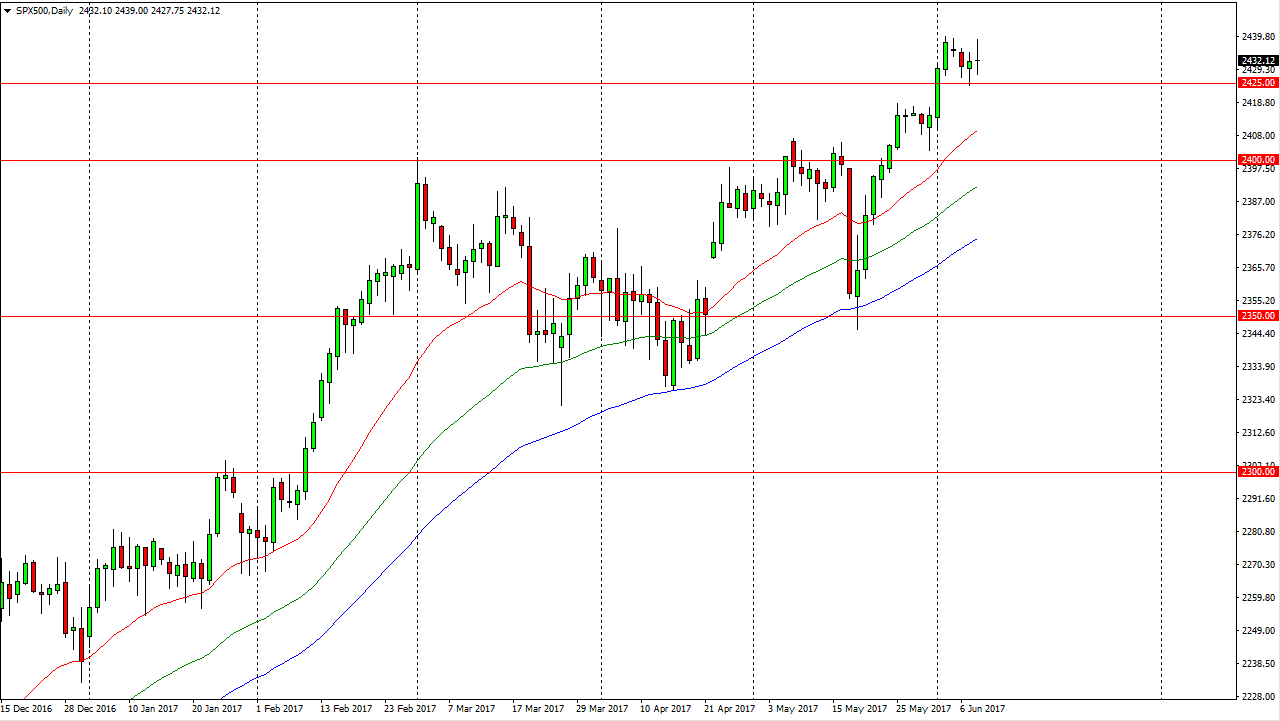 The S&P 500 was volatile during the session on Thursday, as we had congressional hearings, the UK election, and of course the ECB press conference. Quite frankly, it was far too much drama to be involved in the market during, and if you’re smart, you are on the sidelines. However, when you look at the longer-term charts there’s a clear and obvious uptrend so I certainly don’t have any interest in shorting this market although I recognize it could pull back. Pullback is probably going to end of being a nice value play for someone out there, and I plan to take advantage of it once I see a pullback and a supportive candle on the daily charts. In the meantime, I think it’s probably best to either trade individual stocks, or simply stay away from the index itself.