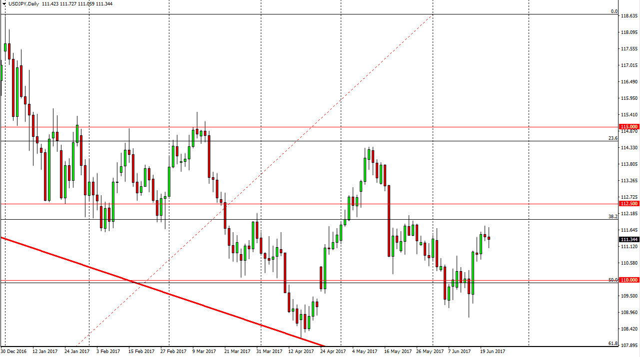 The USD/JPY pair went back and forth during the day on Wednesday, as we continue to see volatility in the markets. Breaking down below the bottom of the shooting star from the previous session of course was negative, but by the end of the day, we gained back almost all of the losses from the trading session. If we can break above the top of the shooting star from the Tuesday session, it’s likely that we will go hunting for the 112.50 level above. A break above there could send this market looking towards the 114 handle. That is a level that has been interesting, and I think will continue to attract a lot of attention. A break above the 114 handle also could send this market to the 115 handle. The markets continue to be bullish in general, especially considering that we broke above the top of the hammer from the previous week.