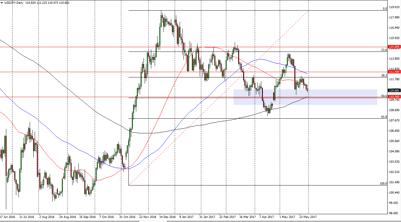 The USD/JPY pair initially tried to rally on Wednesday but turned around and felt to form a bit of a shooting star. I still see a significant amount of support just below at the 110 handle, and I believe it’s only a matter of time before the buyers return. We may have to test that large, round, psychologically significant number, and perhaps even the gap below there so that we can build up enough momentum to continue the longer-term uptrend. If we can find the right support, the market should then reach towards the 112.50 level, and a move above there should send the market to the 115 handle. Even if we break down, I believe that the 108 level will offer significant support as well, as it is a 61.8% Fibonacci retracement level.