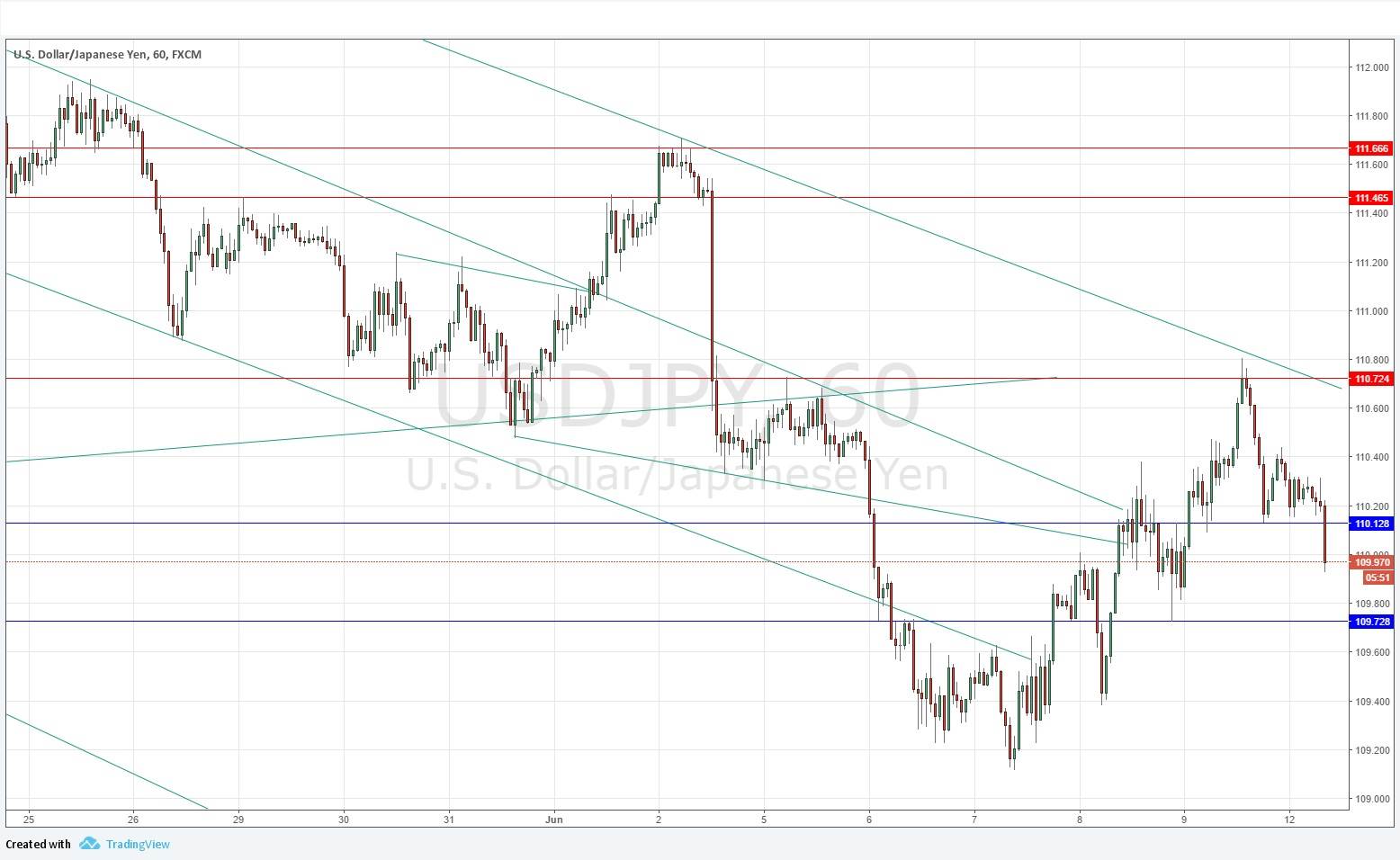 We have seen a pull-back very close to the upper trend line of the bearish channel shown in the chart below, and the price behaved in line with the technical situation by falling from there. We see a continuation of the bearish picture over the past few hours as the price breaks down below anticipated support at 110.13. It is debatable whether the price will fall much further, but the trends are certainly bearish now.