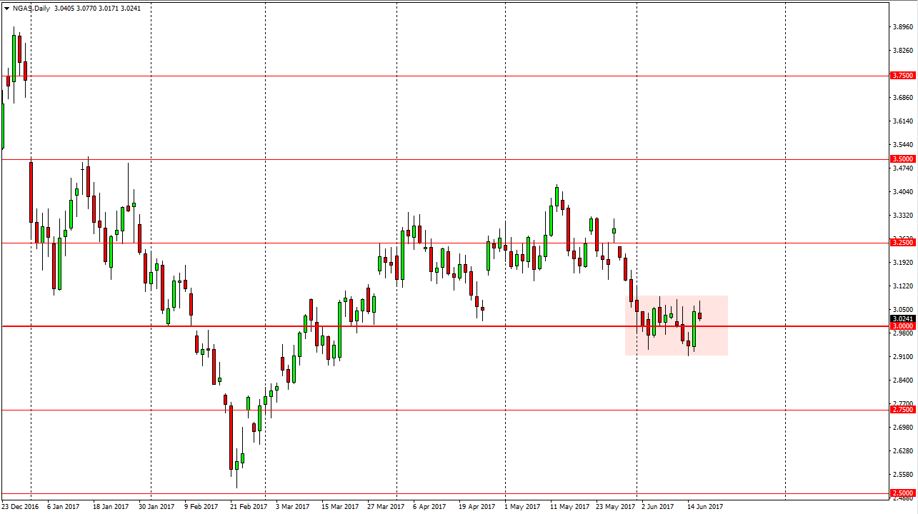 Natural gas markets tried to rally at the open on Friday, but turned around to form a shooting star. It looks as if we are going to continue the overall consolidation, and therefore could reach towards the $2.90 level below. Ultimately, the market should continue to be relatively choppy, but a breakdown below there should send this market looking to the $2.75 level underneath which is a supportive level, and I think at that point the market would probably drop even further, perhaps reaching towards the $2.50 level after that.