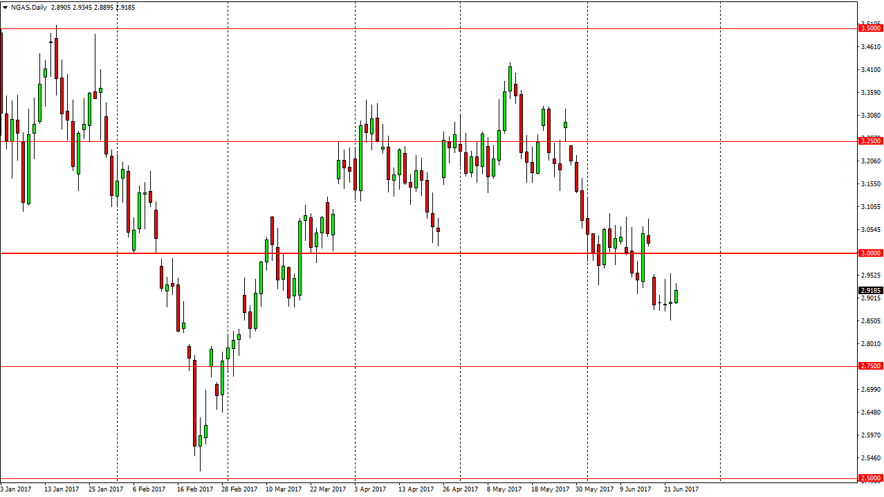 The natural gas markets rallied a bit during the day on Friday, bouncing off the $2.90 level. The market is certainly in a bearish market, and the $3.00 level above offers massive resistance due to the gap in the market, and of course the large, round, psychologically significant number. The market continues to go lower, and with that being the case I look at any time this market rallies as an opportunity to pounce on what is a massive negative. I believe that the market should then go to the $2.75 level, which is even more support. However, the downward momentum looks as if it is trying to send this market down to the $2.50 level, an area that I think will probably be where we end up towards the end of the summer, perhaps the fall. I have no interest in buying this market until we can break above the $3.10 level, something that does not seem likely to happen anytime soon, as the market continues to be volatile, yet very negative.