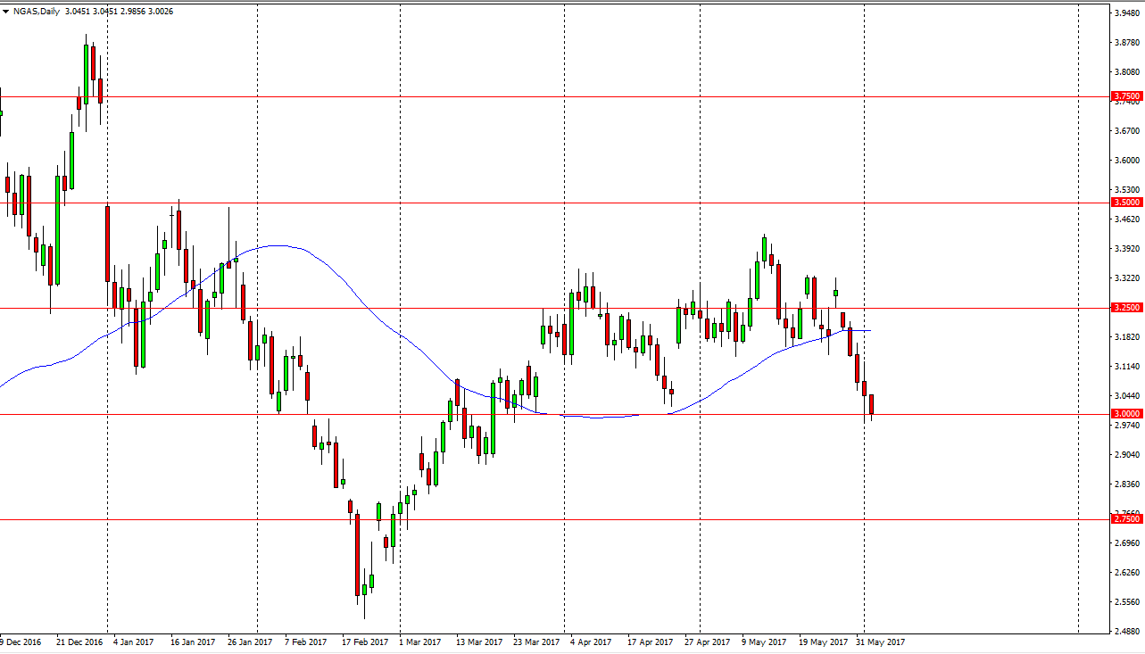 Natural gas markets fell during the Friday session, testing the $3 level. We are in an area that is massively supportive, so if we can break down below the bottom of the range for both Thursday and Friday, the market will fall apart. I believe the first target will be the $2.90 level, followed very quickly by the $2.75 level. The market does look as if it is rolling over, as we have not only filled the gap from April, but have broken down through it. I believe buying this market is going to be very difficult in the short term, and I suspect that it’s only a matter of time before the sellers exert their will. However, a break above the $3.08 level could offer a hope for buyers. Until then, expect quite a bit of negativity and look at rallies with extreme suspicion, as sellers will more than likely try to take advantage.