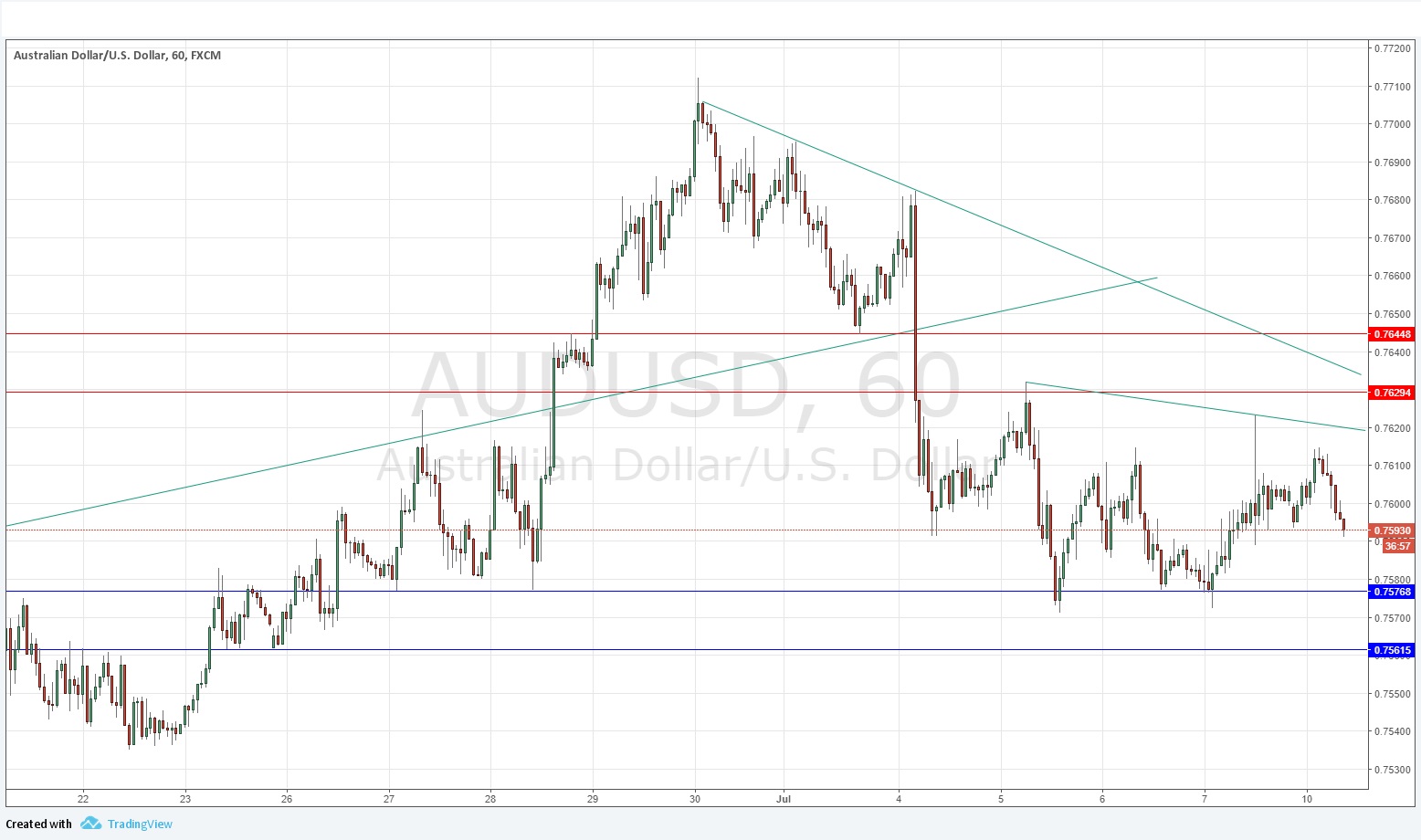 - Short entry following some bearish price action on the H1 time frame immediately upon the next touch of 0.7629 or 0.7645.