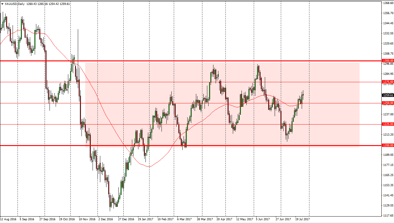 I think that the Federal Reserve has made it clear that they are going to be somewhat dovish, and that should be good for gold. I don’t know that were necessarily going to break out to the upside, but I do think that a return to the $1300 level would not be out of the question. If we do breakdown, I think it’s not until we slice below the $1240 level that you can consider selling this market, as it would probably roll over towards the $1225 level. I think that there is a lot of volatility just waiting to happen, but when you look at the overall market, it’s obvious that we have been consolidating for several months. I believe that we still have a range of $1200 on the bottom, and $1300 on the top. That has not changed, so I can only assume that since we are above the middle point, we will continue to see bullish pressure, especially considering that the Federal Reserve has already made it clear that they are going to be very slow in tightening monetary policy. That’s not to say that this will be an easy trade, but I think we do chop around with an upward bias.