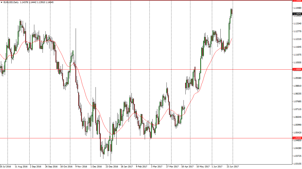 The EUR/USD pair has been impulsive of the last several sessions, but we turned around to form a slightly negative candle. The 1.14 level underneath should be supportive, but quite frankly I think that if we break down below there, the 1.13 level is even more supportive. Longer-term, the market has been consolidating over the last 3 years, with the 1.05 level underneath being the floor, while the 1.15 level above being resistive. A break above there could send this market into a fringy to the upside on the longer-term, but I think that more than likely we will have to try to break out several times, as it is a massive barrier. With this being the case, I am looking at a pullback as a short-term buying opportunity, with perhaps an exhaustive candle near the 1.15 level as a longer-term short opportunity, which would be a continuation of the longer-term consolidation.