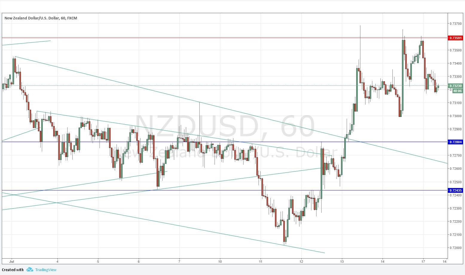 We saw a bullish breakout from a bearish channel towards the end of last week, but subsequently a bearish short-term triple top was formed at the key resistance level of 0.7359. The pair is clearly less bullish that its “sister” pair AUD/USD. Furthermore, the area around 0.7359 has been strong long-term resistance, although we are in a minor bullish trend, without any doubt. Although the long yield on this pair is about as good as it gets, and so this pair remains a vehicle for traders wanting to short the U.S. Dollar, I do not see it as providing much opportunity today. Nevertheless, if New Zealand CPI data later comes in significantly stronger than expected, the price would be likely to break up past the resistance, although it may just be a spike providing a fast fading opportunity.