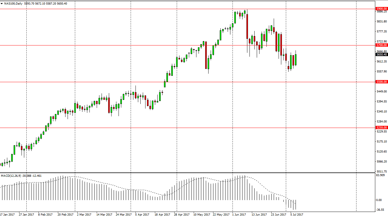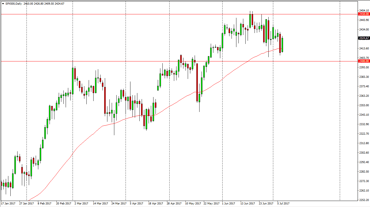 The S&P 500 rallied on Friday, capturing all the losses that it had incurred during the Thursday session. It now looks as if we are ready to continue going higher, and perhaps reaching towards the 2450 level. Eventually, I believe that the 2450 level gets broken and we go to the 2500 level. I also believe that the market should continue to be choppy, but given enough time we should see plenty of buying pressure. The 2400 level underneath should continue to be a “floor” in the market, as the S&P 500 has enjoyed good earnings and of course bullish pressure over the longer term. I believe eventually we will be testing the 2500 level as so many people are aware of its importance.