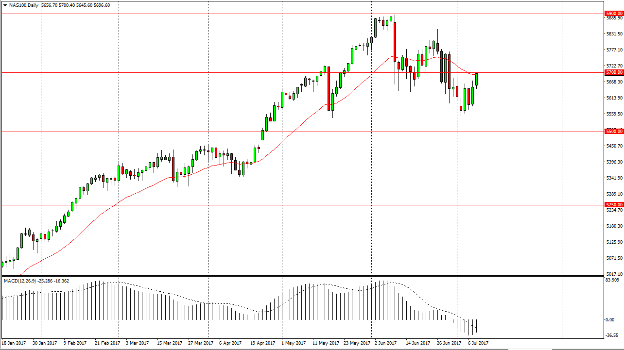 The NASDAQ 100 rallied on Monday, testing the 5700 level. If we can break above there, the market should continue to go much higher, as we have had a nice pullback. The NASDAQ 100 has been very bullish, and I believe that we will eventually go to 5900 if we can get the break out. Otherwise, we may pull back in and continue to grind lower in slow motion. The 5500-level underneath is massively supportive, and I believe that the uptrend is still very much intact if we can stay above that level. If we don’t, things will get very bad for the NASDAQ 100, and it could send the rest the US stock markets lower as well. My longer-term target has been 6000 for some time, but I don’t think we will get there anytime soon, the volatility and of course the fact that we are in the middle of summer, should continue to work against momentum overall, as it is traditionally a very quiet time of year.