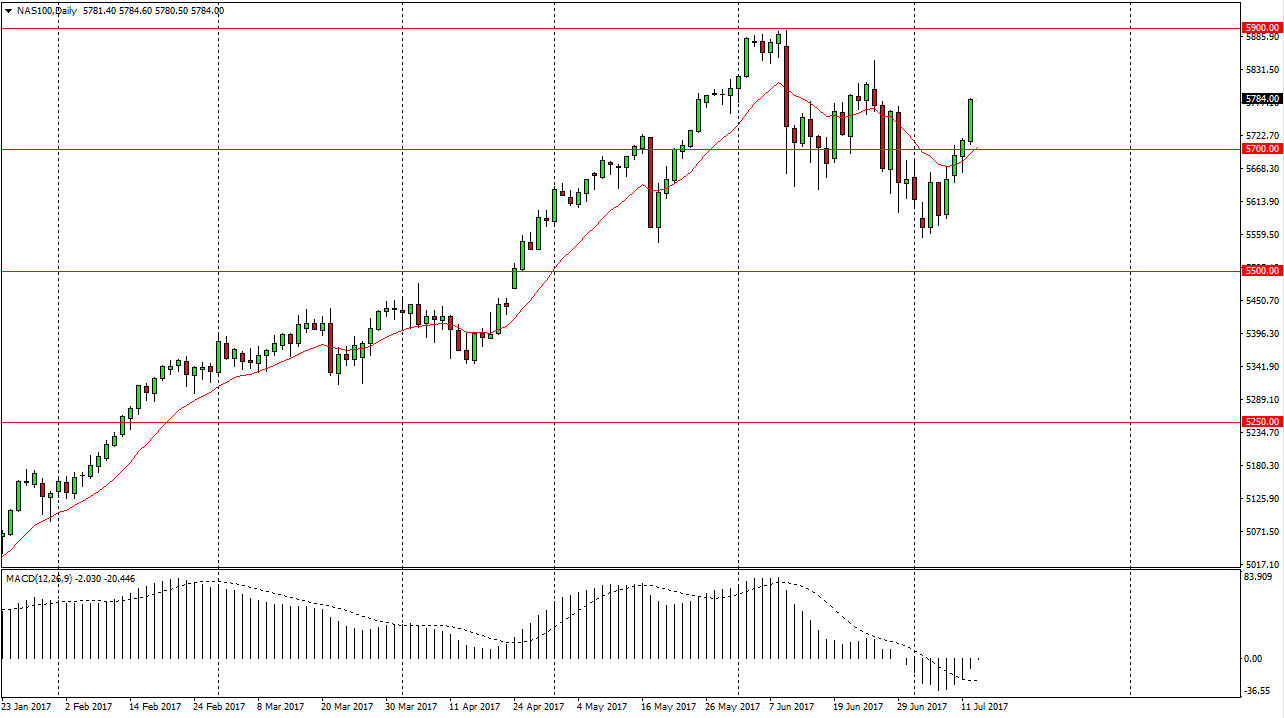 The NASDAQ 100 also broke higher during the Wednesday session, and for very similar reasons. Ultimately, this is a market that I think is going to go looking for the 5800 level immediately, and then the 5900 level which was massive resistance in the past. I think once we break above there, the market then goes looking for 6000. Pullbacks continue to be an opportunity to pick up value, and I think that people will continue to look at it as such. With this in mind, I am a buyer of dips until we break below the 5560 handle. Until then, I suspect that the buyers are going to continue to jump on this market every time it pulls back as I think that the longer-term lead that the NASDAQ 100 has had in the US indices should continue. Ultimately, I have no interest in shorting until the breakdown happens.