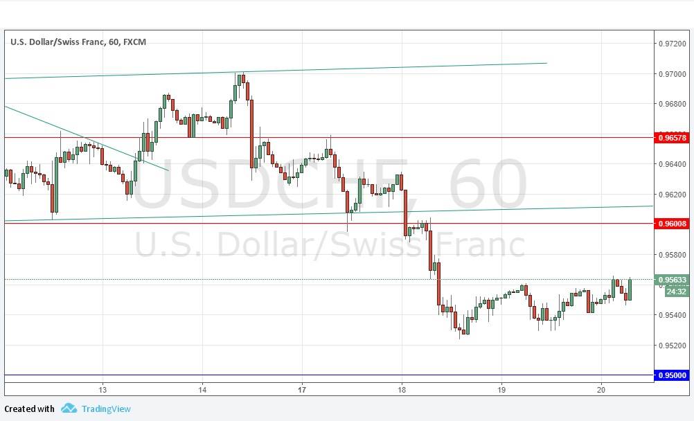 The price has not yet even managed to touch the very strong support level I am expecting at the psychologically important round number of 0.9500. The resistance at the next round number above at 0.9600 also remains. Recent hours have seen a small, mild bullish retracement that tells us little. It is generally a good idea to trade reversals at round numbers with this currency pair generally, and this is the scenario that is worth waiting for here. A bullish reversal at 0.9500 could be an excellent long-term long trade entry, despite the bearish trend in the U.S. Dollar.