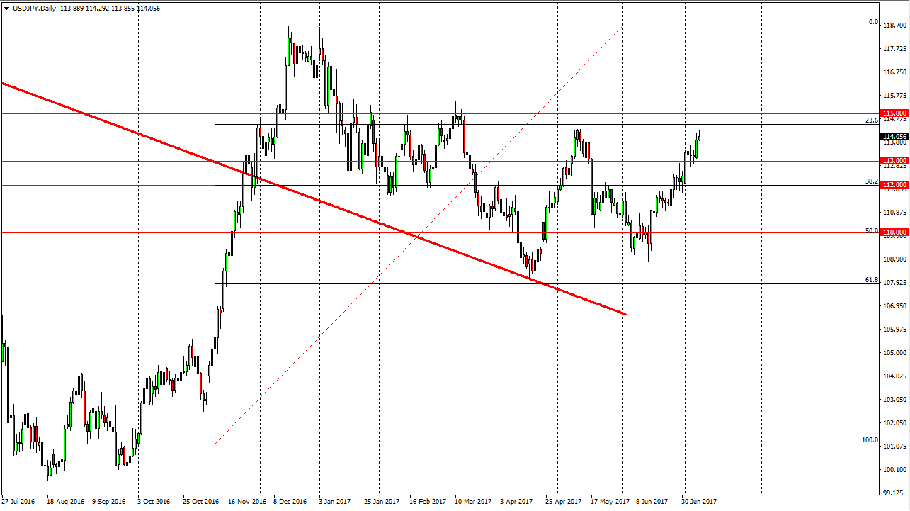 The US dollar rallied a bit during the day on Monday, but continues to find resistance just above. The 115 level is a massive barrier, so I think between here and there you are going to see a lot of pushback. If we can break above the 115 level on a daily close, the market should continue to go even higher, perhaps reach towards the 118.70 level. In the meantime, I think that short-term pullbacks are likely, and they will more than likely offer opportunities to buy this pair at lower levels, with the likely support coming in at the 113 level to keep the uptrend intact. Once we break above the 115 level, I would be willing to add to an already long position as it should accelerate the upside in this market. The Bank of Japan is miles away from raising interest rates, while the Federal Reserve is likely to do so later this year.