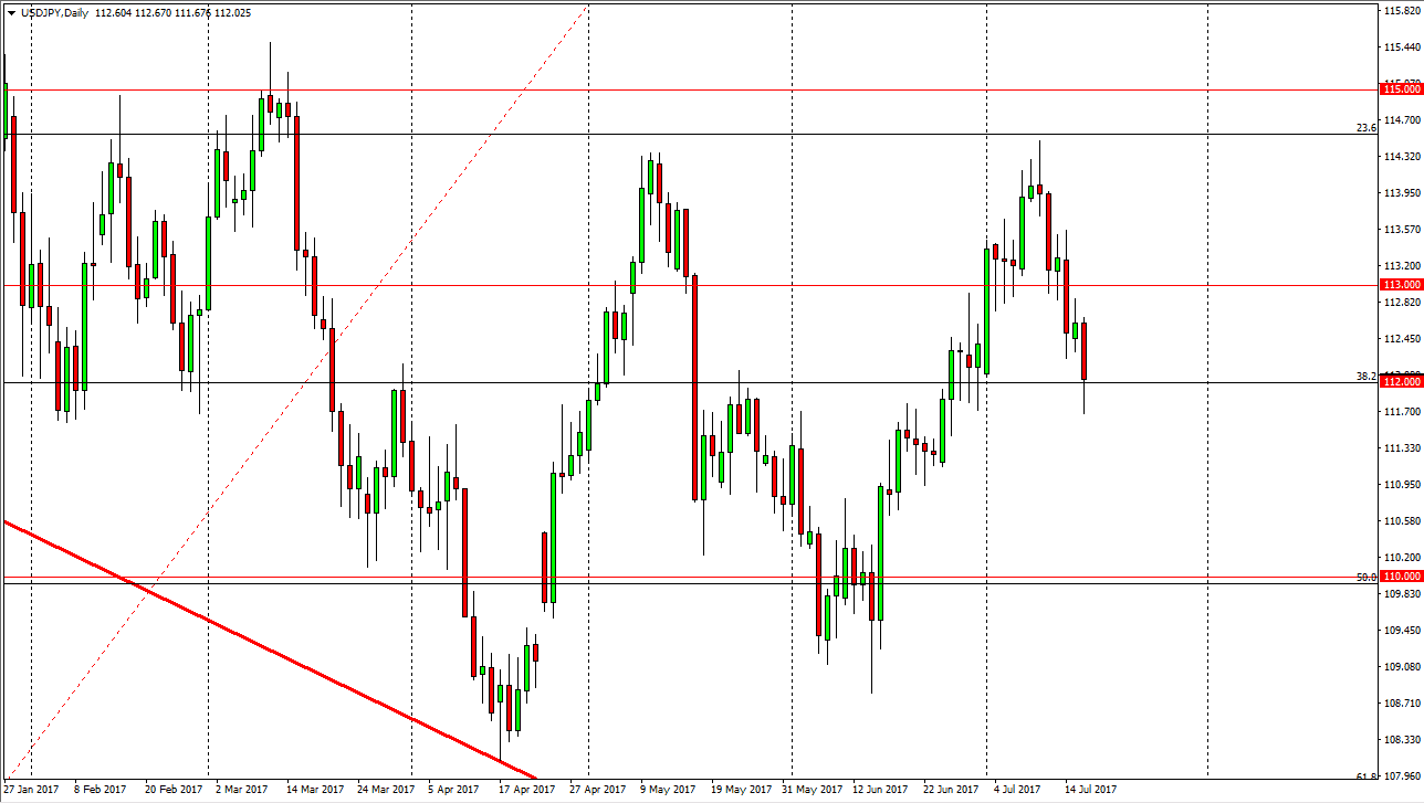 The US dollar has fallen a bit during the session on Tuesday, slamming into the 112 level. This is an area where I expect to see buyers though, and the fact that we bounced from just below that level isn’t much of a surprise. I would also point out that we have bounced off the 50% Fibonacci retracement level from the most recent move, so it makes sense that people would have been looking to buy in this area. If we can continue to move higher, perhaps above the 112.25 handle, I believe the market will go looking towards the 113 handle. If we break down below the lows of the session on Tuesday, I feel that the market will then go looking for the 111 level.