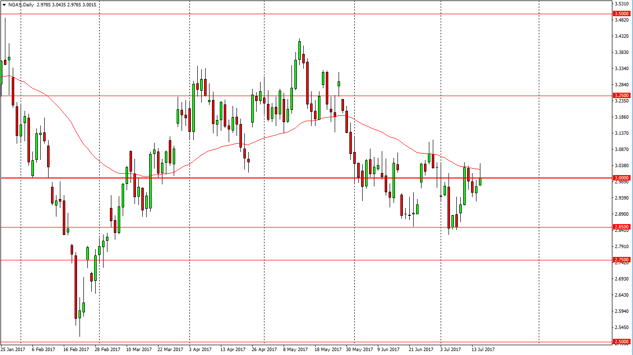 The natural gas markets initially tried to rally on Monday, but as you can see the 50-day exponential moving average formed a shooting star. Ultimately, this is a selling opportunity, and a breakdown below the bottom of the range for the day it would be an opportunity to reach down to the $2.85 level. That’s my target and the short-term, but I believe we will break down below there as well. Natural gas is oversupplied, and a massive amount of natural gas continues to be the biggest issue. I think that the market is a “sell the rallies” type of situation, and therefore have no interest in buying. I believe there is a massive amount of resistance at the $3.12 level. Ultimately, this market I think is a long-term “sell rallies” situation overall, just as gold was in the 1980s. Even if we were to break above the $3.12 level, there is even more resistance near the $3.25 level above.