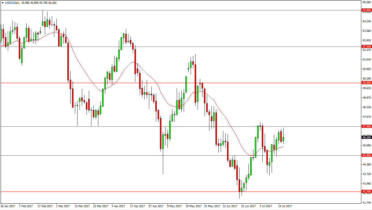 The WTI Crude Oil market initially shot much higher during the day on Tuesday but found enough resistance near the $47 level to turn around and form a shooting star. I believe that a lot of traders stepped out of the market as we await the Crude Oil Inventories announcement coming out today. Simply put, this will be a volatile session but I believe longer-term I still have quite a bit of bearish pressure in this market. With that being the case, I look to sell rallies, especially if they feel near the $47 level again. A break above the $47 level could send this market towards the $48.50 level. Alternately, I suspect that we are going to go down to the $45 level, possibly even lower.