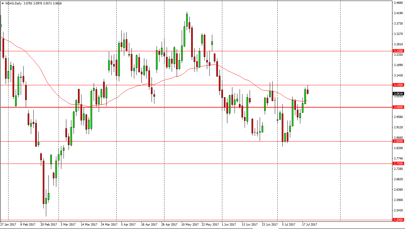 Natural gas markets initially tried to rally during the day on Wednesday, but found the $3.10 level to be far too resistive. The shooting star that we form suggests that we are going to roll over, and if that’s the case we should then go down to the re-$.00 level. A breakdown below the $3.00 level, the market will more than likely continue to go much lower, perhaps the $2.95 level, and then the $2.85 level. Given enough time, I believe that the sellers will return, as the markets are very aware the fact that the overhang of supply and the natural gas markets should continue to be a major factor in the market. I have no interest in buying, and even if we break above the $3.12 level, the market then finds resistance starting at $3.20 level above there.