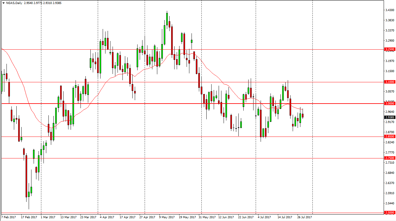 The natural gas markets initially tried to rally during the day, but then turned around to form and exhaustive candle. The market looks as if it is ready to fall from here, perhaps reaching down towards the $2.85 level. If we can break down below there, I think that the market should then go to the $2.85 level, and then eventually the $2.75 level after that. I don’t have any interest in buying, I believe that the $3 level is significantly resistive, and it extends all the way to the $3.10 level. Selling rallies continues to be the best way to trade this market as far as I can see, and I don’t see that changing anytime soon. Quite frankly, I don’t like natural gas as we are oversupplied, and that should continue to be the case for years, if not decades. Eventually, I think that we can break down to the $2.50 level, which was the ultimate low on 2017. If we did break above the $3.10 level, I think the market could go looking towards the $3.25 level above, which is even more resistive.