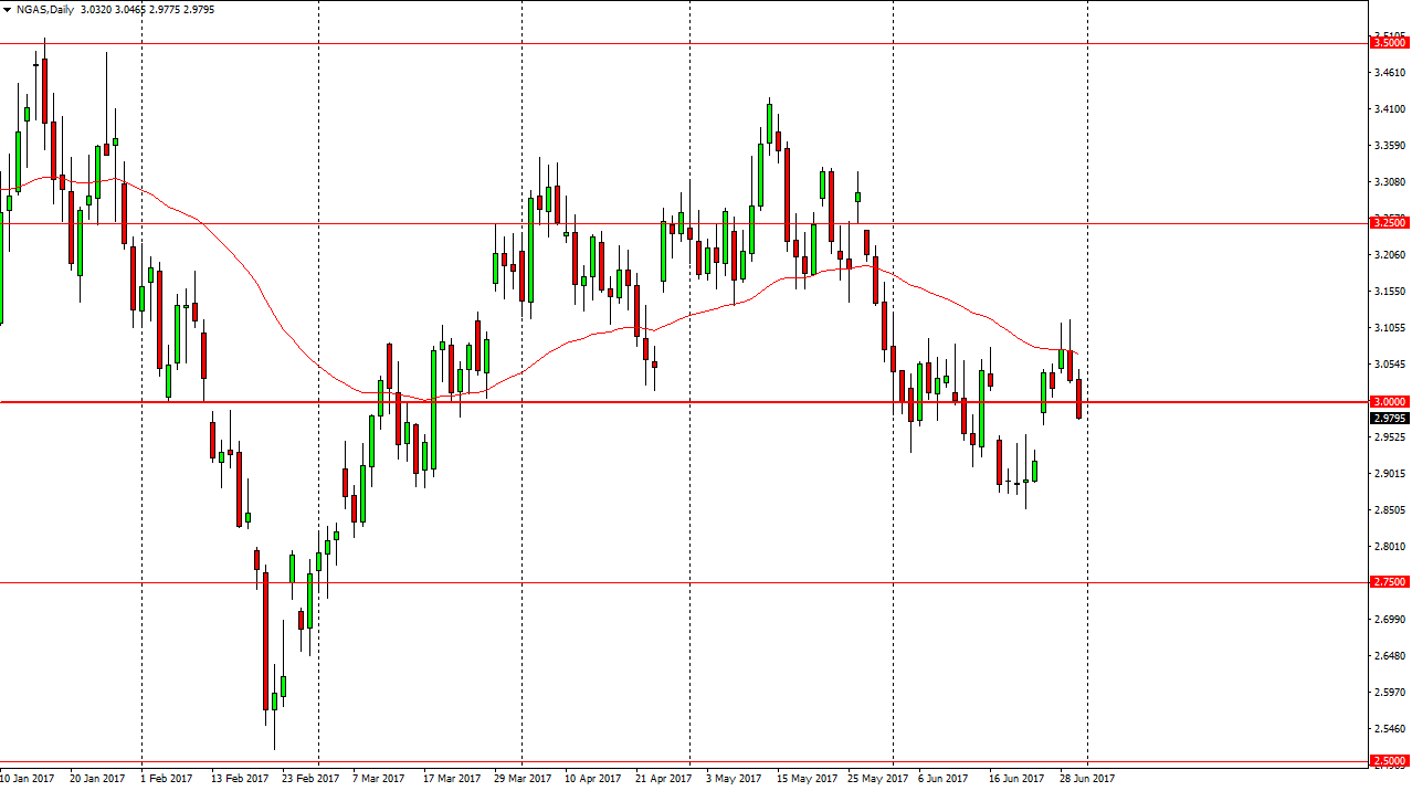 Natural gas markets fell during the day on Friday, slicing through the $3 level. By doing so, looks as if we are ready to continue falling and trying to fill the gap. A breakdown below the $2.85 level underneath to the $2.75 level. This is a market that is rolling over in a downtrend suggesting that we are going to continue to go lower. If we can break down below the $2.75 level, that should send the market to the $2.50 level. Ultimately, rallies should continue to be selling opportunities, and I have no interest in buying. The commodities markets continue to be a very volatile place, and the natural gas markets of course are oversupplied. The massive amount of oversupply continues to be an issue, even though we have had warmer temperatures in the United States. Because of this, I think it’s only a matter of time before we fall every time we rally and therefore I ignore any buying signals.