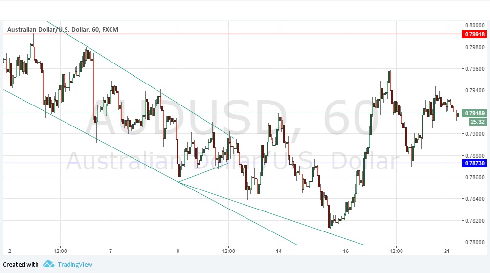 - Long entry following some bullish price action on the H1 time frame immediately upon the next touch of 0.7873.