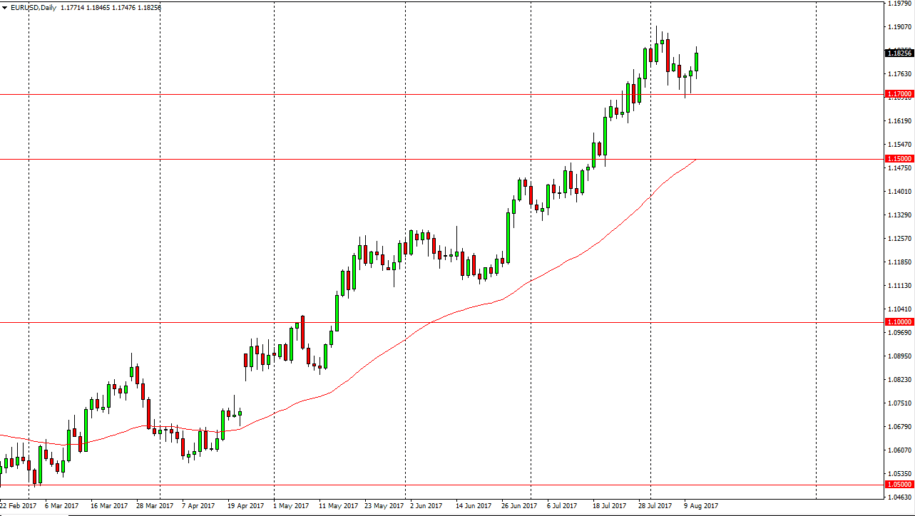 The EUR/USD pair initially fell during the day on Friday, but broke higher as we have cleared a couple of candles that formed hammers on the daily chart. Because of this, the market looks likely to go reaching towards the upside again, and I believe that we will eventually reach towards the 1.19 level above. Ultimately, I think that the market will find that the buyers are going to go looking towards the 1.20 level. A pullback from here should be thought of as value, as the market has shown such resiliency. The 1.17 level underneath should be massively supportive. However, if we break down below there, then I think the market is looking towards the 1.15 handle under that. Ultimately, this is a market that looks very bullish.
