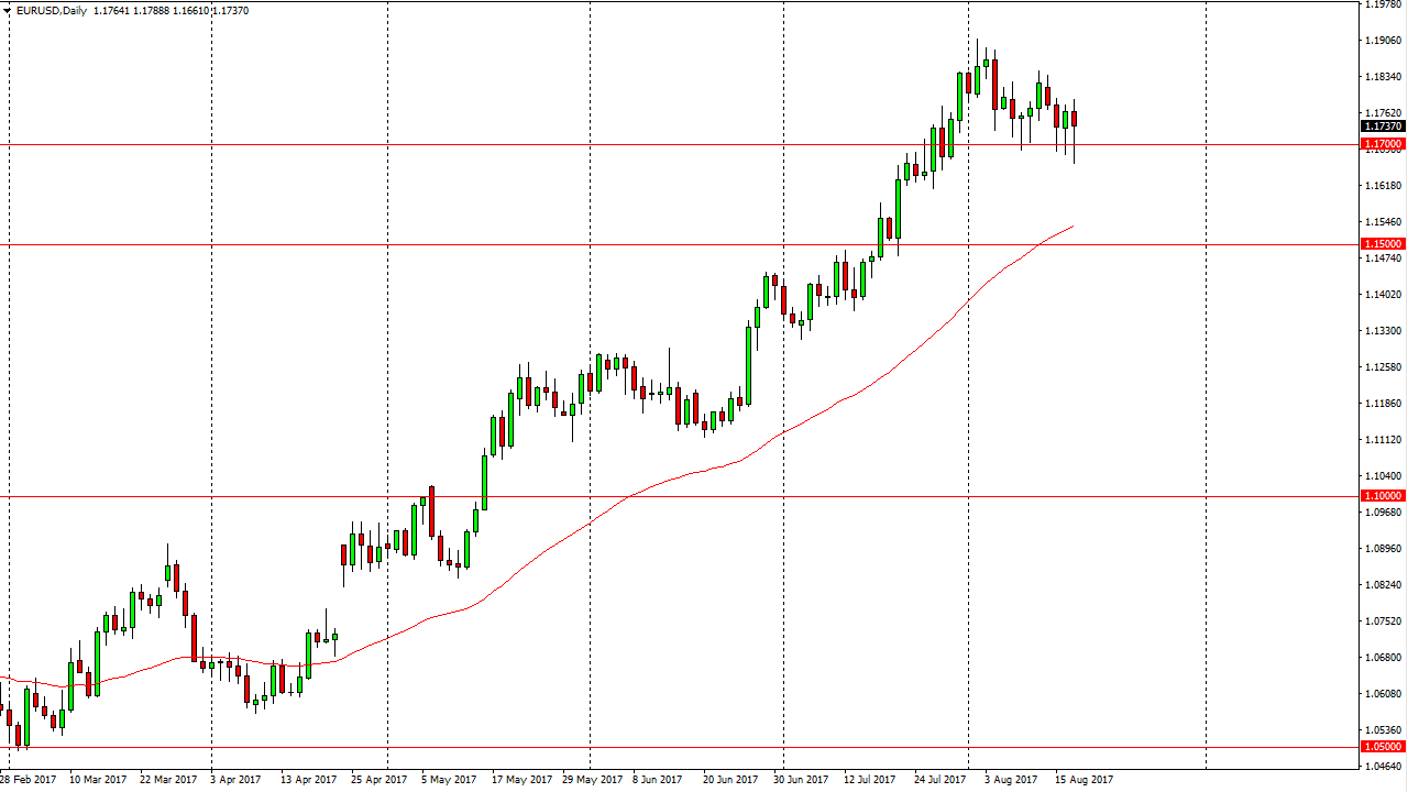 The EUR/USD pair fell initially on Friday, but found enough support underneath the 1.17 level to turn things around and form a hammer. Because of this, the market looks likely to continue to find support in this area and therefore I am bullish. I believe that a break above the top of the candle for the session is a nice opportunity to go long, as we should then go to the 1.19 handle. I believe that the market will eventually find plenty of resistance between there and the 1.20 level, but I think that is the longer-term target, the 1.20 level. No matter what happens next, I think you can count on a lot of choppiness but it certainly looks as if the 1.17 level is going to continue to be a major player in the market.