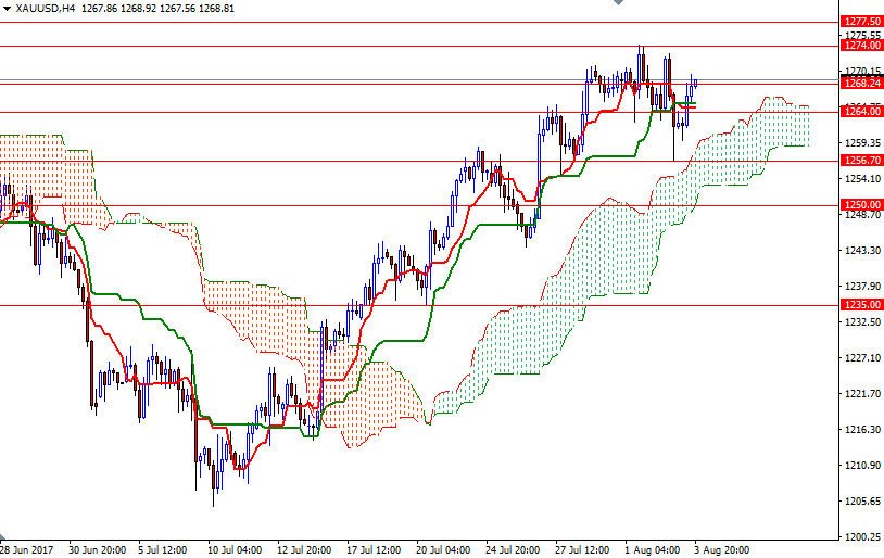 Gold is modestly higher in U.S. trading Thursday. XAU/USD climbed back above the $1264 level earlier in the day and ultimately reached the $1284 level as expected. Although we saw some profit taking after gold prices hit a six-week high earlier this week, long lower shadows on the daily candles suggest that pullbacks continue to attract buyers.