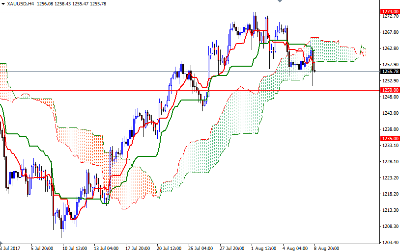 Gold prices are higher in U.S. trading Wednesday as investors sought safety from rising tensions between the U.S. and North Korea. XAU/USD was able to break the anticipated resistance at 1266.50, the top of the Ichimoku cloud on the 4-hour chart, and challenge the next barrier standing in the 1274/1 zone. Gold’s advance came after the impact of strong employment data last week diminished.