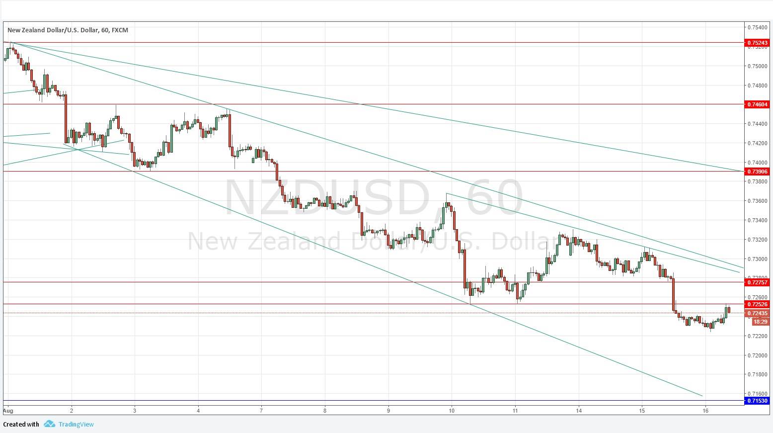 The long-term bullish trend in this pair is now in serious doubt as the price continues to fall. I would say that once the price gets below 0.7200 it has little prospect of reviving. Over the medium term, this pair remains in a strongly bearish trend, with the price suppressed by clear and dominant bearish trend lines shown in the chart below. A further bearish sign was the break below a former resistance level at 0.7244. It looks as if new resistance has formed at 0.7253 but as this has just been touched I do not look to it. Instead, the next resistance level above, at 0.7275, is quite confluent with the bearish trend lines, so it looks an attractive place to seek a new short trade.